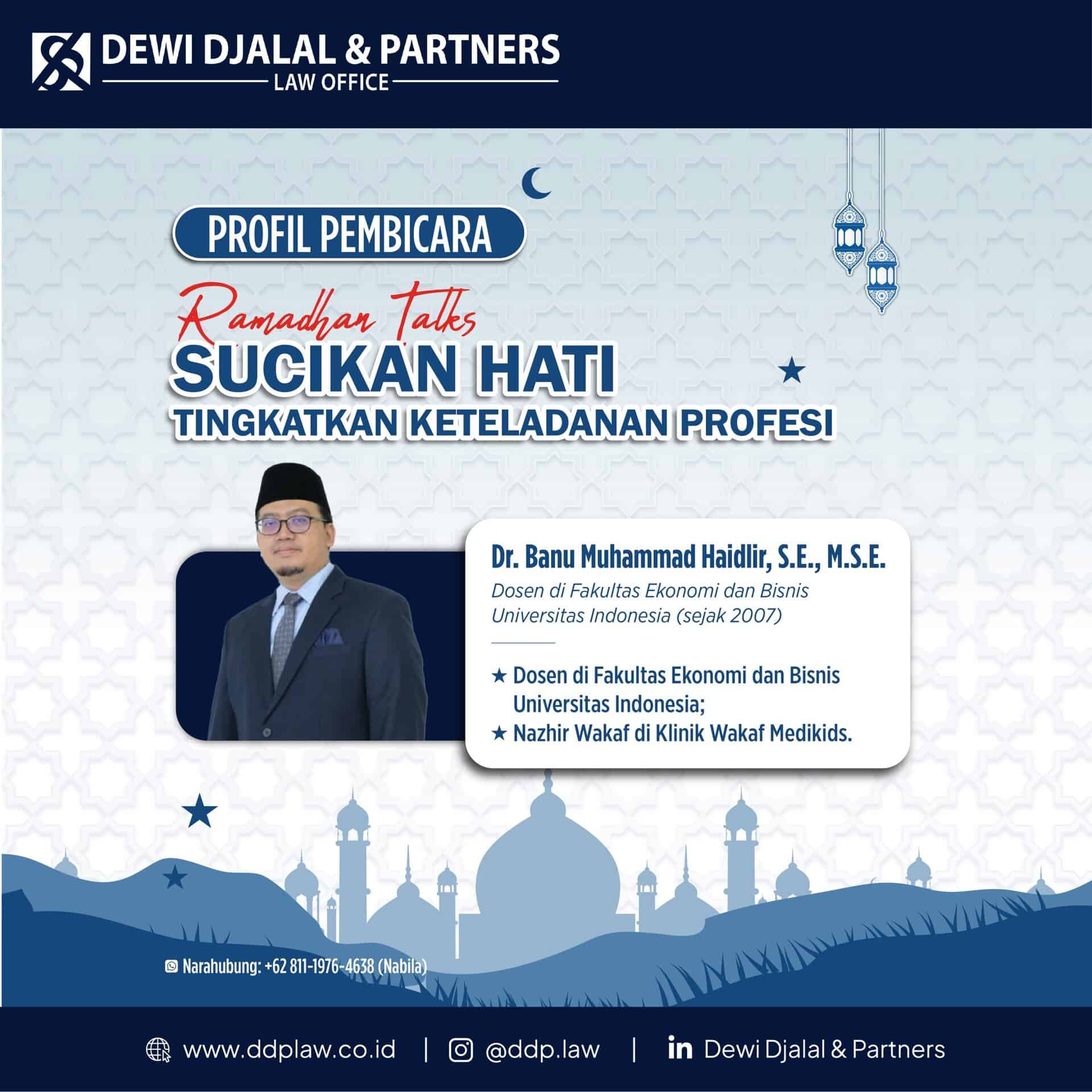 Pada kajian kedua DDP Ramadan Talks, Bapak Dr. Banu Muhammad Haidir, S.E., M.S.E. akan membawakan tema: