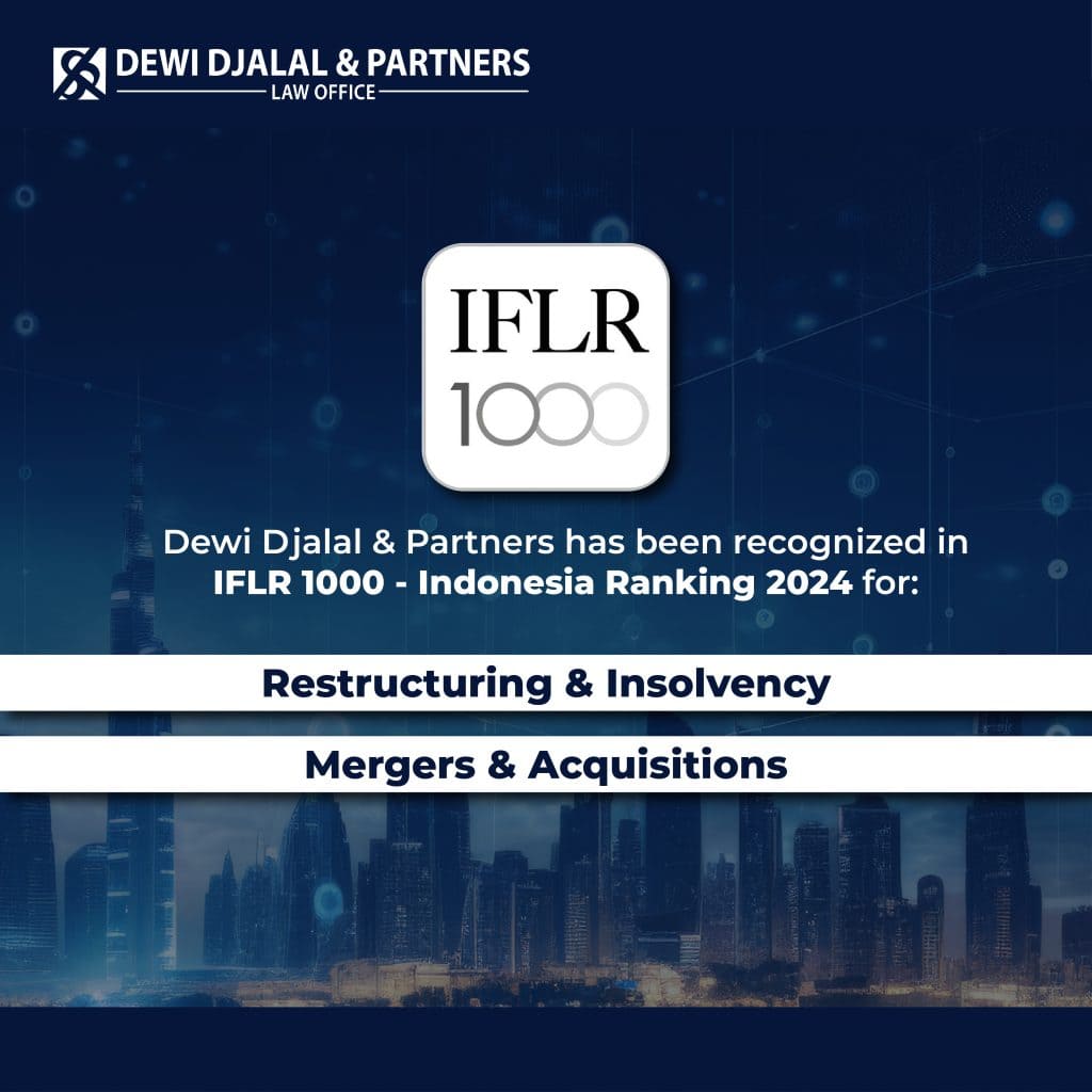 Dewi Djalal & Partners is honored and filled with gratitude to be recognized in IFLR 1000 Indonesia Ranking 2024 for practice areas: Restructuring & Insolvency Mergers & Acquisitions We could not have turned these challenges into blessings without the satisfaction and loyalty of our clients. We truly appreciate the trust you’ve placed in us and