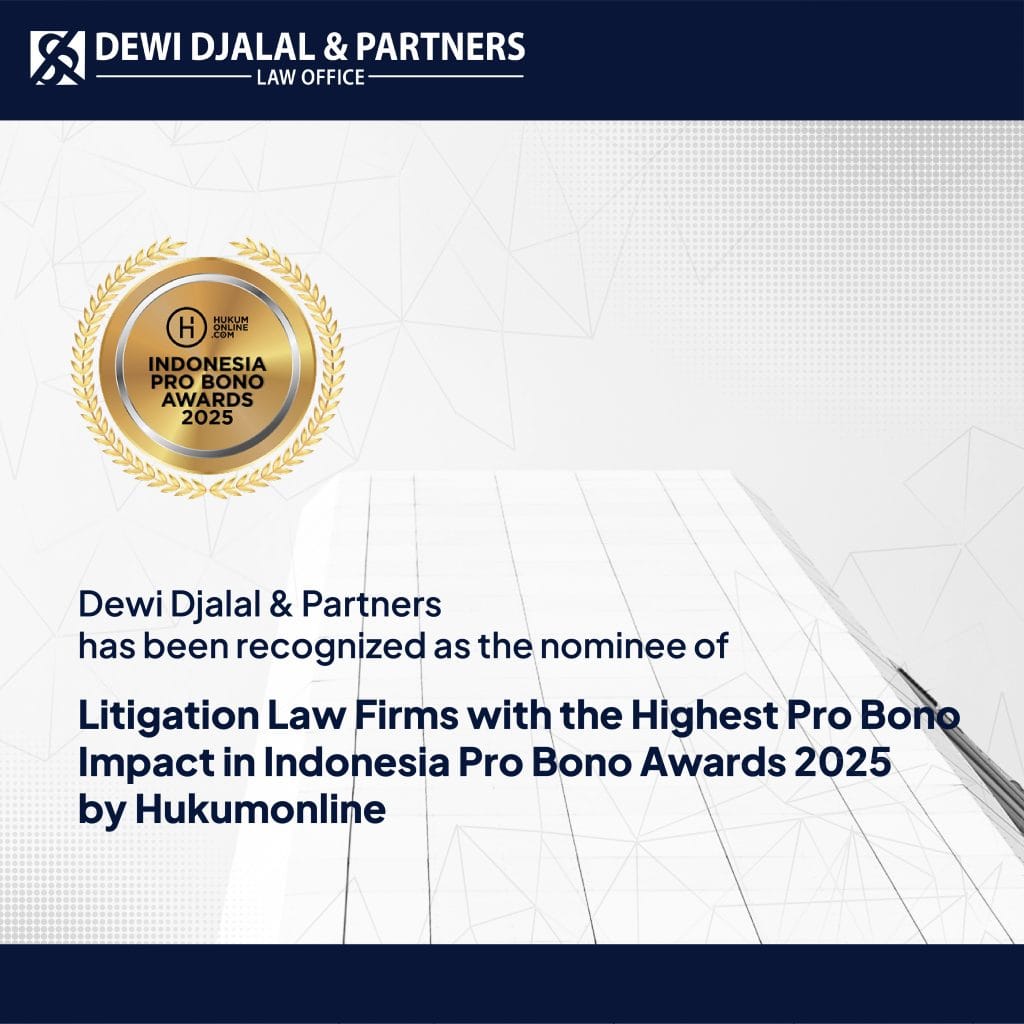 Dewi Djalal & Partners is humbled and honored for being listed as the nominee of Indonesia Pro Bono Awards 2025 by Hukumonline for Litigation Law Firms with the Highest Pro Bono Impact. Our today’s achievement is nonetheless due to the invested trust from our respective clients. As we keep on upgrading our lawyers, especially on