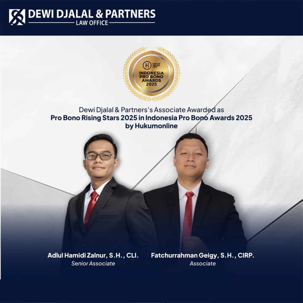 We are humbled to announce that our Senior Associate, Adlul Hamidi Zalnur, S.H., CLI., and our Associate, Fatchurrahman Geigy Haryutama, S.H., CIRP are awarded as Pro Bono Rising Stars 2025 in Indonesia Pro Bono Awards 2025 by Hukumonline. Our today’s achievement is nonetheless due to the invested trust from our respective clients. As we keep